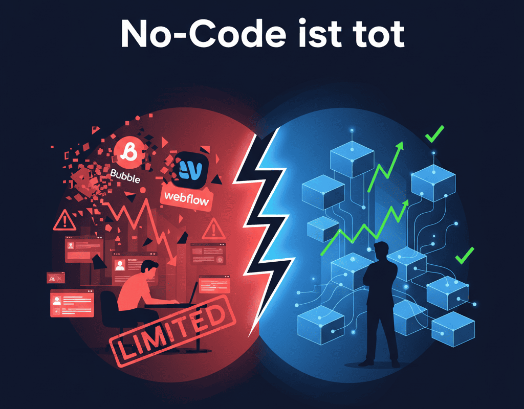 Ihr Startup brauchte eine App. Schnell. Ohne Entwickler. Ohne sechsstelliges Budget. Also bauten Sie sie mit Bubble oder Webflow – in Wochen statt Monaten, für einen Bruchteil der Kosten.